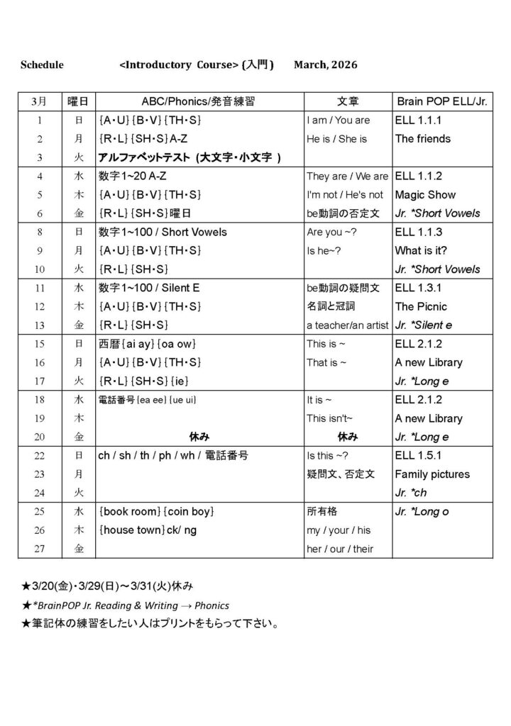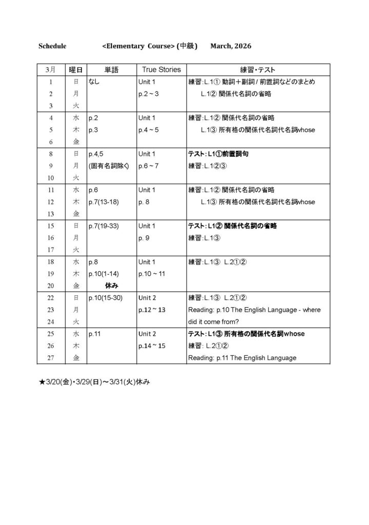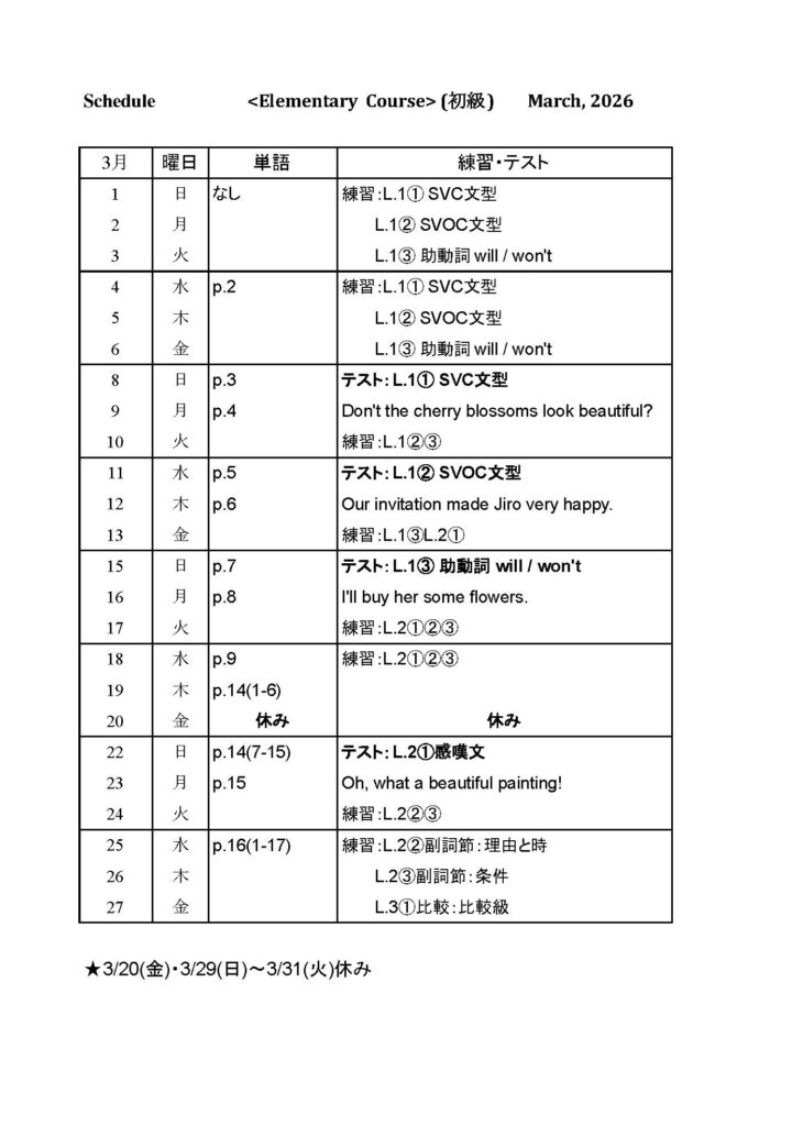 2026年3月予定表